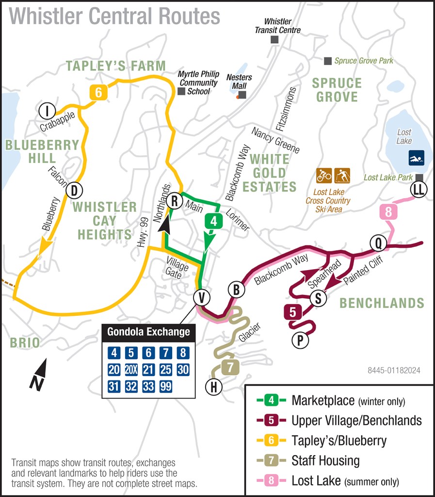 Whistler’s pedestrian-friendly village is perfect for a group trip. Everything you need is within walking distance, from hotels and condos to restaurants and shops. The village is compact and convenient, making it easy to navigate without a car. This walkability adds to the overall charm and convenience, ensuring that your group can easily explore and enjoy all that Whistler has to offer. Whether you’re looking for luxurious hotel suites or cozy condos, Whistler has a range of accommodation options to suit any budget and preference. The only word of advise I would give is if you’re going to (ski) boot up at your accommodations and drag your heavy skis with you, I would def google map your walk to the lifts because everything seems further when you’re in your clunky robot boots. The Whistler Village map below includes a guide on the left-hand side, showing what is approximately a 5-minute walk.